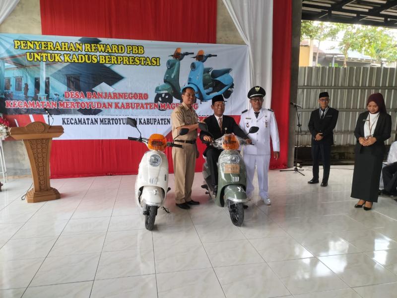 Disela - sela pelaksanaan Pengambilan sumpah/janji dan Pelantikan Kasi Pelayanan ini ada pemberian Reward kepada kepala dusun yang dalam penarikan Pajak Bumi dan Bangunan (PBB) mencapai diatas 90%, adapun kepala dusun yang mencapai target penarikan PBB ada 2 orang yaitu kepala dusun glagah 1 yaitu Ibu Erma Fatmayasari dan kepala dusun Noyoditan yaitu bapak Cahyadi Adi Wibowo. Untuk reward sendiri yang diberikan kepada kepala dusun berupa sepeda motor listrik.