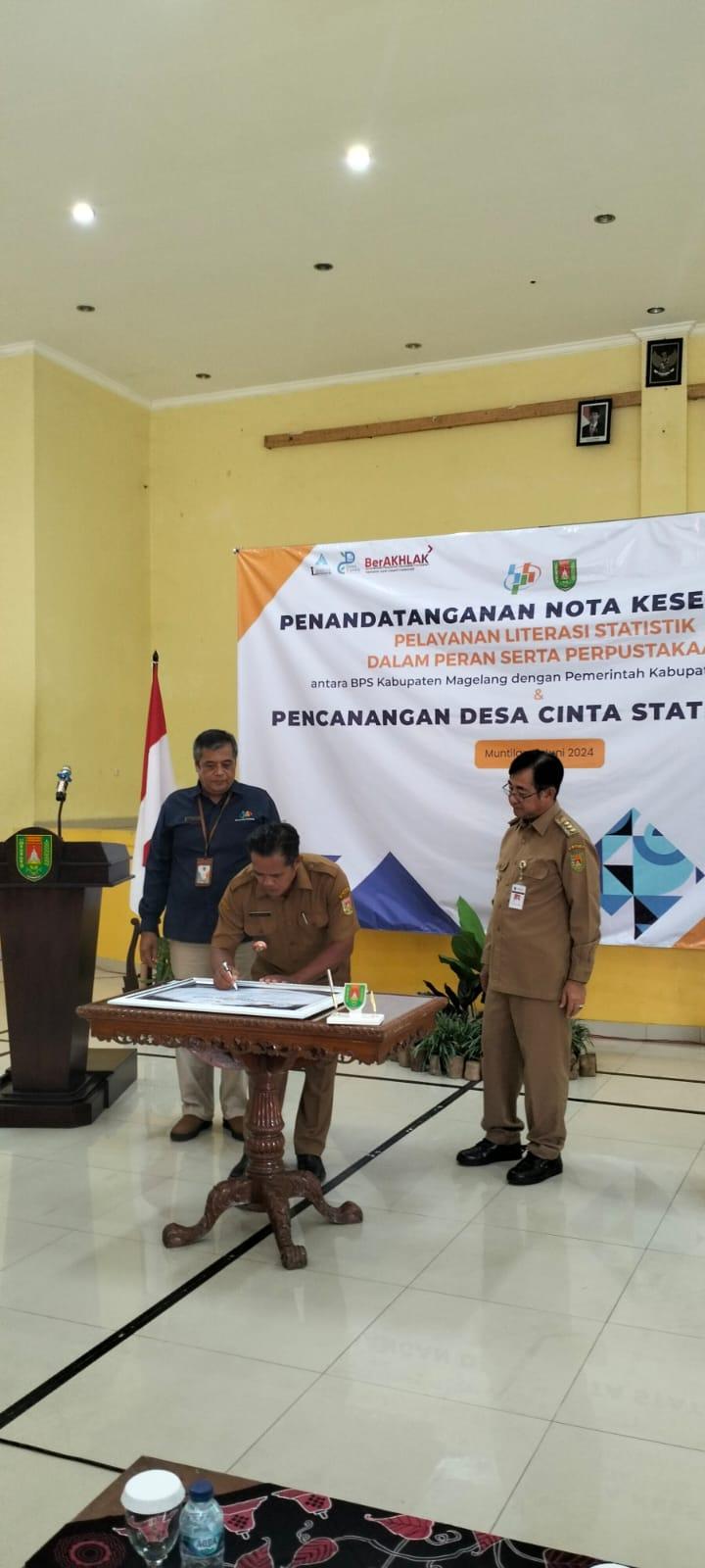 BANJARNEGORO SID, Pada hari Senini tanggal 3 Juni 2024 kemarin Kepala Desa Banjarnegoro mendapat undangan untuk menghadiri Penandatangan Nota Kesepakatan Pelayanan Literasi Statistik Dalam Peran Serta Perpustakaan dan Pencanangan Desa Cinta Statistik Tahun 2024. Acara ini merupakan bentuk inovasi dari Badan Pusat Statistik (BPS) Kabupaten Magelang untuk lebih mendekatkan layanan kepada masyarakat melalui program literasi tentang beragam statistik, yang berkolaborasi dengan Dinas Perpustakaan dan Kearsipan Kabupaten Magelang.
