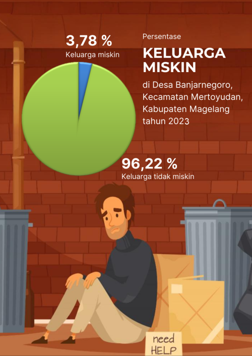 dalam kegiatan pengisian Aplikasi Amongrasa yang dikelola oleh Kominfo Kabupaten Magelang salah satu isiannya adalah jumlah keluarga miskin, untuk desa banjarnegoro sendiri dari hasil updating data Amongrasa tahun 2024 terdapat 157 KK, sedangakan untuk tahun 2023 kemarin 155 KK sehingga angka kemiskinannya mengalami peningkatan.